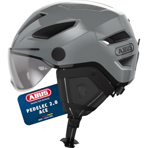 ABUS Casque de ville Pedelec 2.0 ACE - casque de vélo avec feu arrière, visière, bonnet de pluie, protection des oreilles - pour hommes et femmes