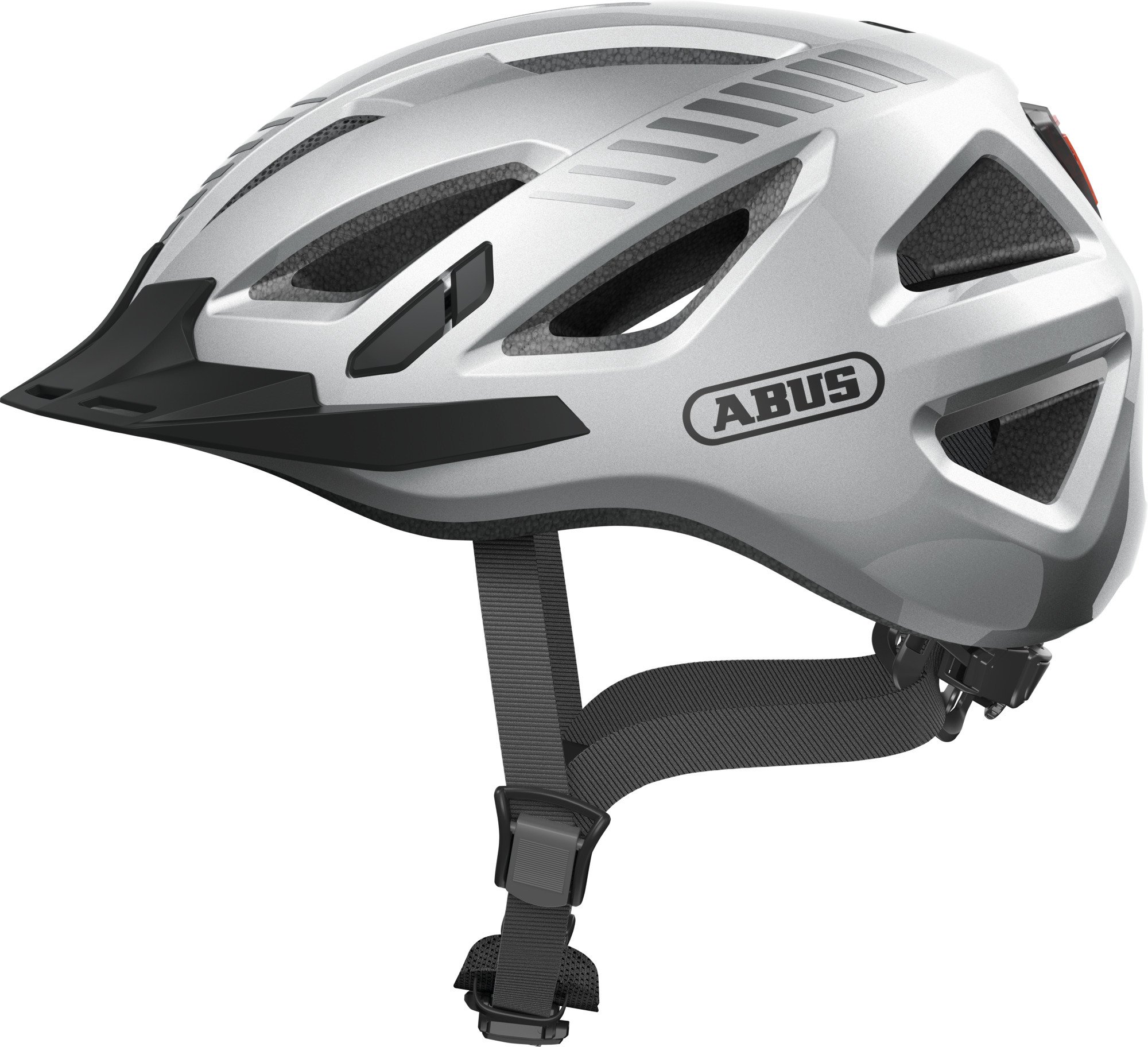 Casque de ville ABUS Urban-I 3.0 - casque de vélo avec feu arrière, visière et fermeture magnétique - pour femmes et hommes - argent, taille M (52-58 cm)