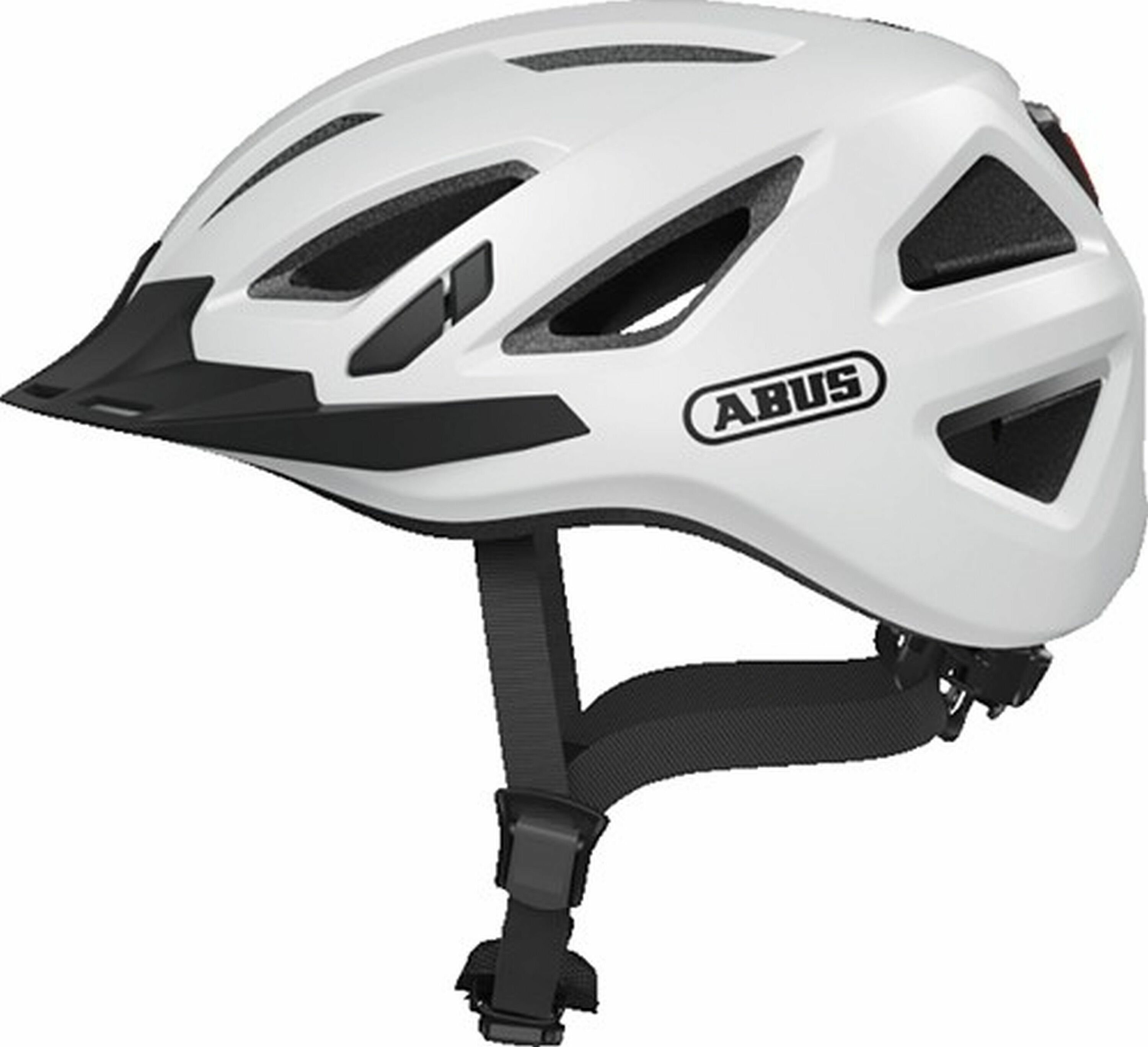 Casque de ville ABUS Urban-I 3.0 - Casque de vélo avec feu arrière, visière et fermeture magnétique - pour femmes et hommes - Blanc, taille S (51-55 cm)
