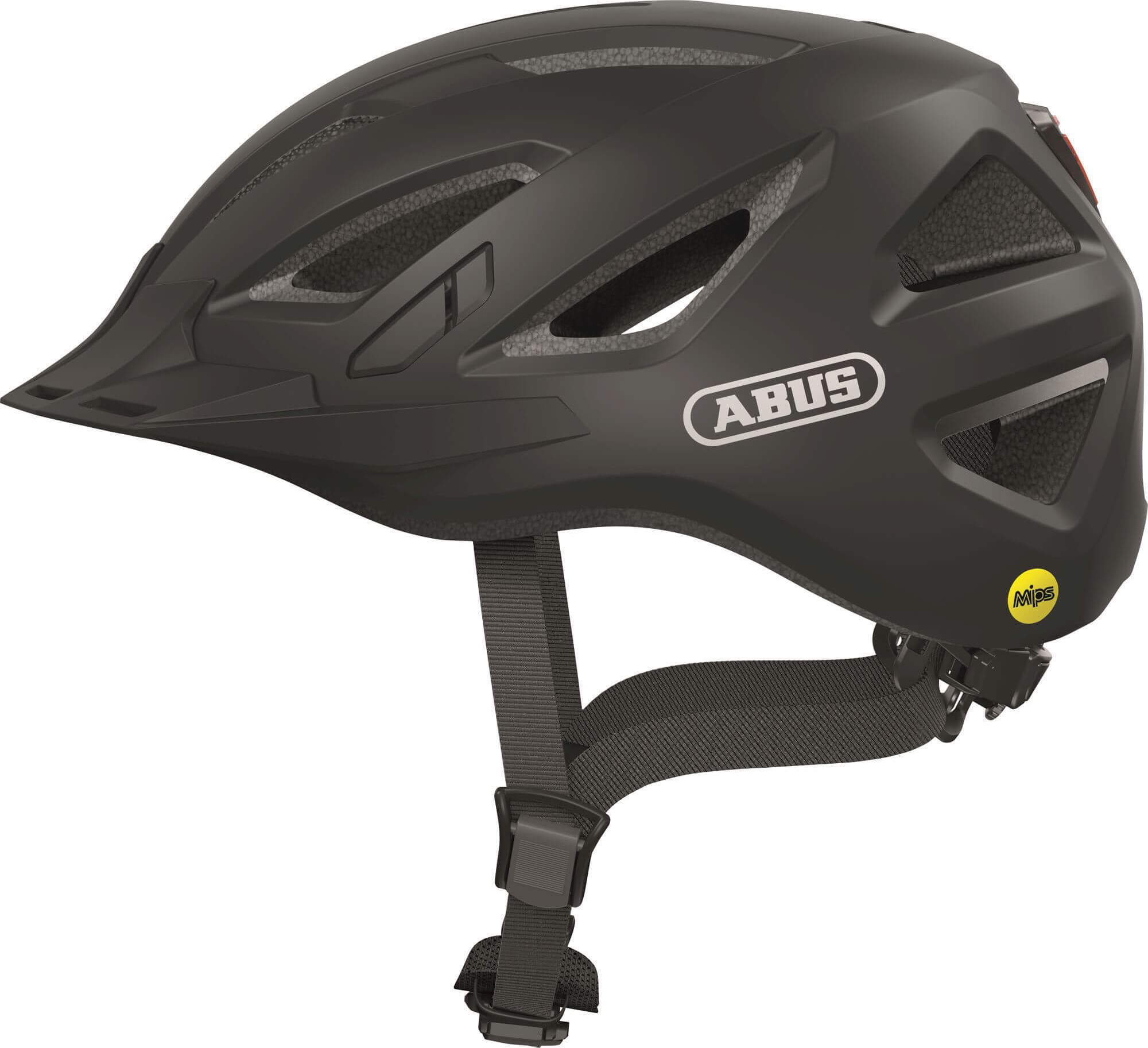 Casque de ville ABUS Urban-I 3.0 MIPS - casque de vélo avec protection contre les chocs, feu arrière, visière et fermeture magnétique - pour femmes et hommes - noir mat, taille L (56-61 cm)