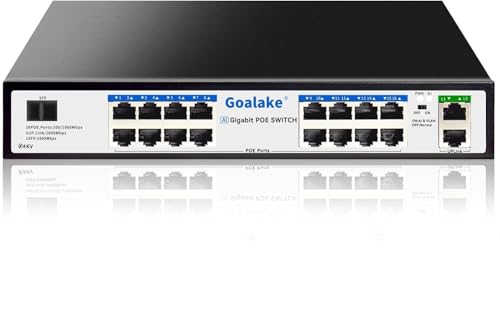 Goalake Switch PoE 19 Ports Gigabit 10/100/1000Mbps, 16 Gigabit PoE+@240W, IEEE 802.3af/at, Plug et Play, VLAN, Ideal for IP Surveillance and Access Point, Position Bureau, Mur ou Rackable
