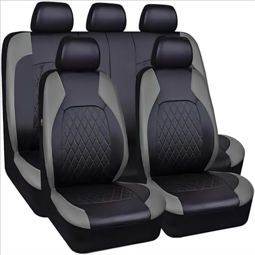 Leenax Enterprises 9Pcs 5 sièges Voiture Cuir Ensembles Housses siège, pour Citroen C3 Aircross C4 Aircross C5 Aircross C5 Aircross S Confortables Nonslip Imperméable Protection Accessoire,F/Grey
