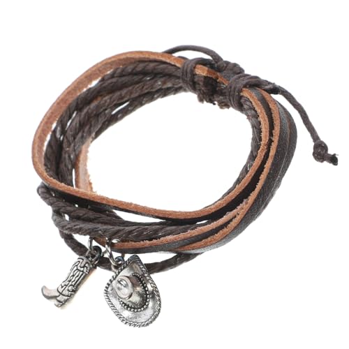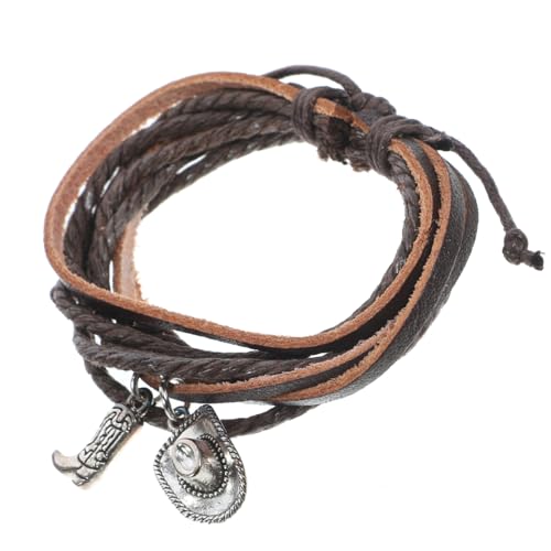 iplusmile Bracelet en Cuir pour Homme Multicouche Vintage Western, Cuir Véritable Marron, Décor Chapeau et Bottes de Cowboy, Accessoire Mode Homme, Style Décontracté, Taille Ajustable