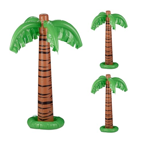 Relaxdays Palmier Gonflable, Lot de 3, Accessoire de fête, Piscine & Plage, 80 cm de Haut, Plastique, Vert - Marron