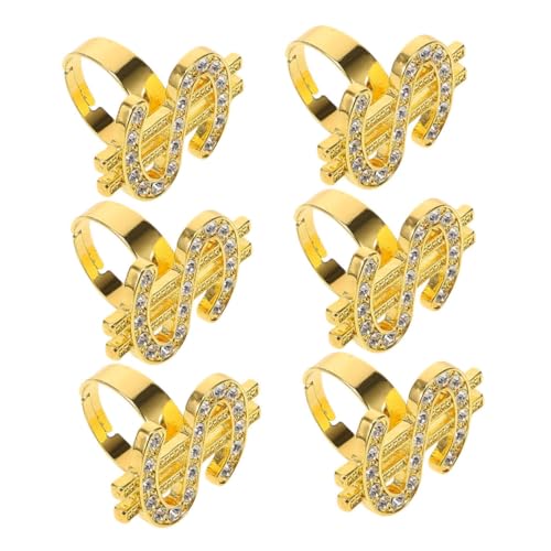 Gogogmee Lot de 6 Bagues de Bijoux Fantaisie pour Femmes Taille Unique Cristaux Incrustés Bagues de Costume Style Punk Accessoire Disco et Déguisement Rappeur pour Soirées et Cosplay