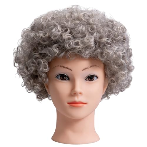 SHATCHI Perruques afro bouclées rebondissantes pour déguisement, fête costumée, accessoire disco unisexe, thème années 60, 70, 80, gris