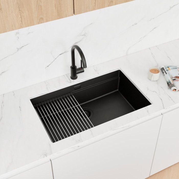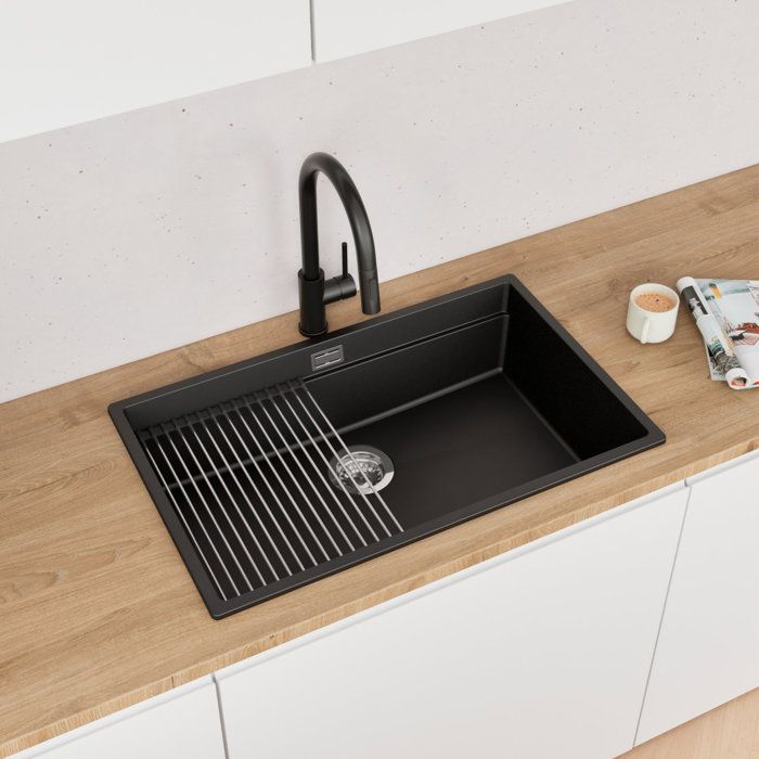 Evier Cuisine en Granit - Noir Siphon Accessoire Évier au meble 80 1 bac Coral Low Level Thin STONESTYLE #3847