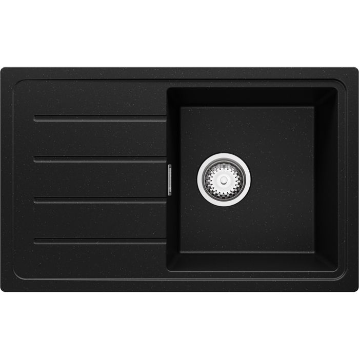 Evier Cuisine en Granit - Noir Siphon 1 bac Accessoire Évier au meble 80 Coral Low Level STONESTYLE #2671