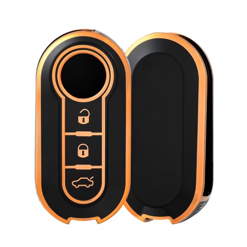 OFF WE GO Coque de Clé Voiture pour Fiat Voiture Clé à Télécommande Étui TPU Coque Protection Clé Voiture pour 500 C/L/X Brava Bravo Doblo Ducato Fiorino Punto Accessoire Clé Voiture, Or Noir
