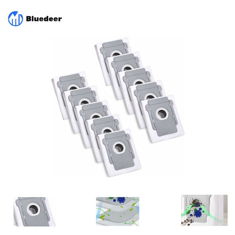 10 Sacs d'aspirateur pour iRobot Roomba i7 i7+ i3 i3+ i4 i4+ i6 i6+ j7 j7+ i8 i8+S9 S9+ E5 E6 E7 Clean Base, Sac à Poussière de Rechange Accessoire