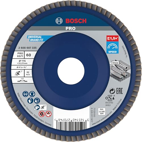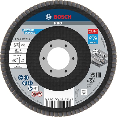 Bosch 1x Plateau à lamelles PRO Metal X571, version plate sur fibres (pour Acier, Acier inoxydable, Ø 115 mm, Grain 60, Professional Accessoire Petite meuleuse angulaire)