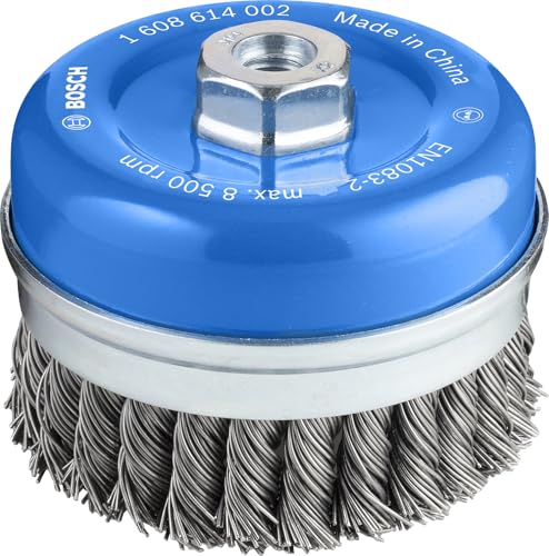 Bosch 1x Brosse boisseau PRO Steel Longlife, fils torsadés pour grande meuleuse angulaire et filetage M14 (pour Acier, Ø 100 mm, Professional Accessoire Grande meuleuse angulaire)
