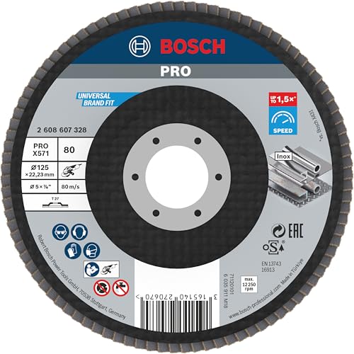 Bosch 1x Plateau à lamelles PRO Metal X571, version plate sur fibres (pour Acier, Acier inoxydable, Ø 125 mm, Grain 80, Professional Accessoire Petite meuleuse angulaire)