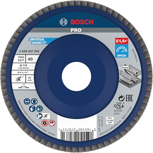 Bosch 1x Plateau à lamelles PRO Metal X571, version plate sur plastique (pour Acier, Acier inoxydable, Ø 115 mm, Grain 40, Professional Accessoire Petite meuleuse angulaire)
