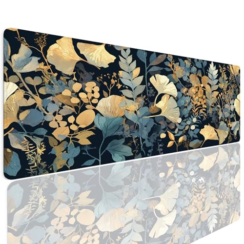 Tapis de Souris Gaming XXL 1600x800x4mm Grand sous Main Bureau, Gamer Mouse Pad Base en Caoutchouc Antidérapant Étanche Mouse Mat Accessoire Bureau pour Ordinateur PC Jeux étude Maison Leaves 4-681