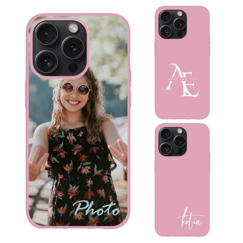 AESTHESTIFY – Coque en silicone rose personnalisée pour iPhone 15 Pro 5G – Housse souple et fine pour téléphone personnalisée avec photo, logo, texte – Accessoire unique pour téléphone personnalisé