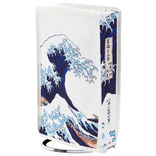 playvital Housse Anti-Poussière pour ps5 Slim Console,Accessoire Protection pour ps5 Slim Cache-Poussière Nylon Dust Cover,Digital Edition-Vertical,Grande Vague Kanagawa