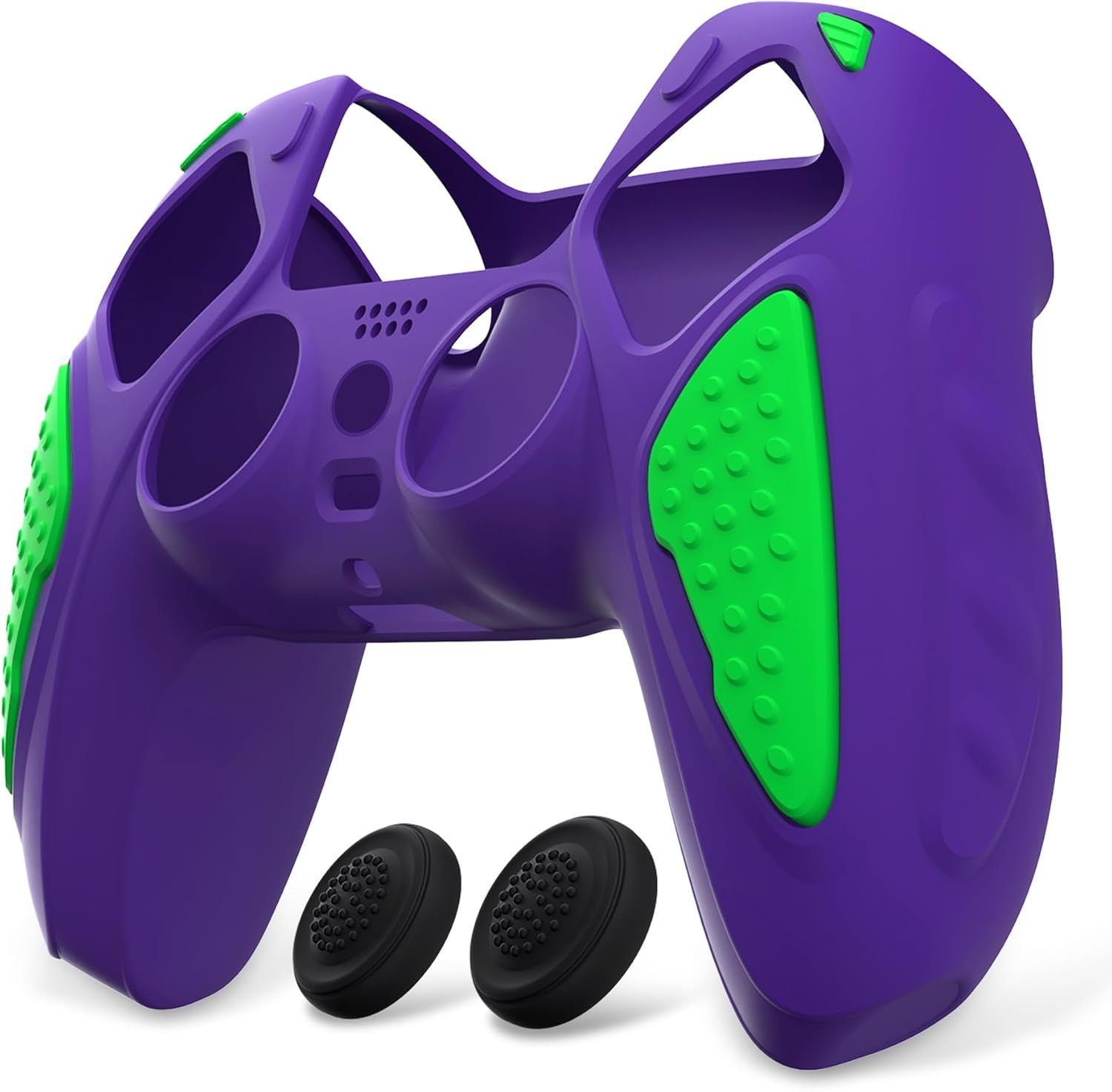 Coque Manette pour ps5 Protection Accessoire pour ps5 Controller Cover Housse Silicone avec Capuchon Joystick,Édition Chevalier-Néon Genesis Violet & Vert