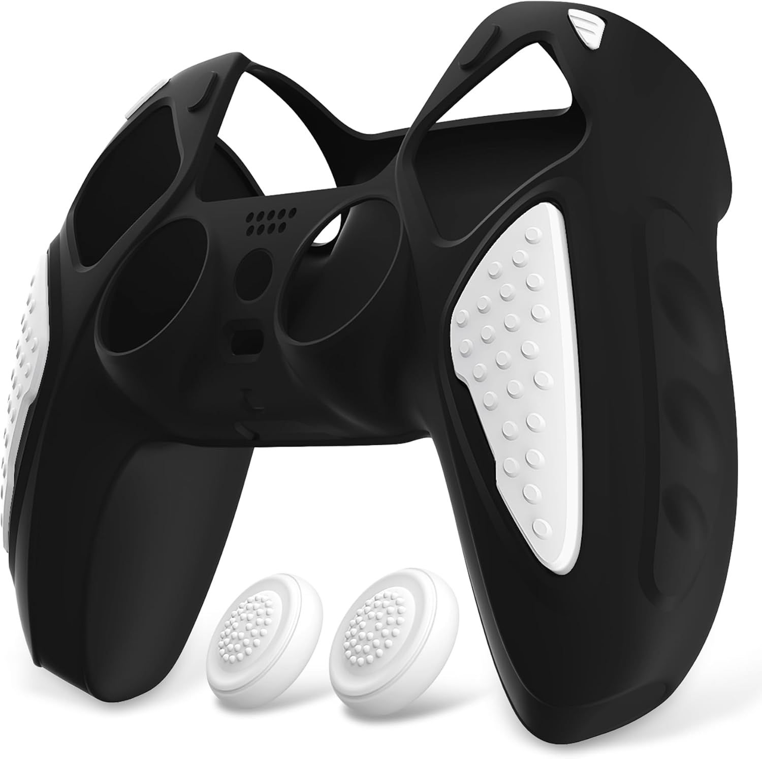 playvital Coque Manette pour ps5 Protection Accessoire pour ps5 Controller Cover Housse Silicone avec Capuchon Joystick,Édition Chevalier-Blanc&Noir