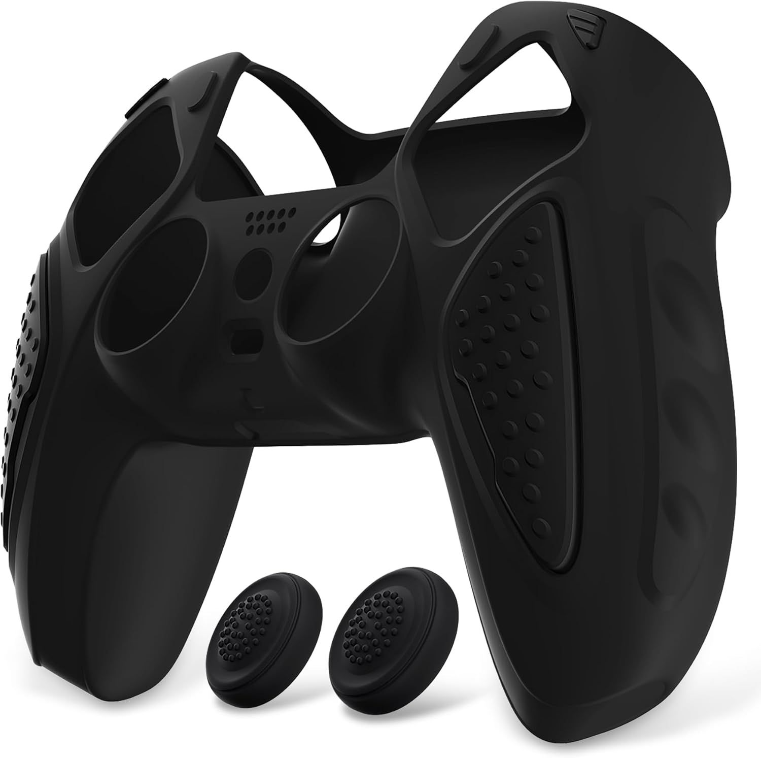 playvital Coque Manette pour ps5 Protection Accessoire pour ps5 Controller Cover Housse Silicone avec Capuchon Joystick,Édition Chevalier-Noir