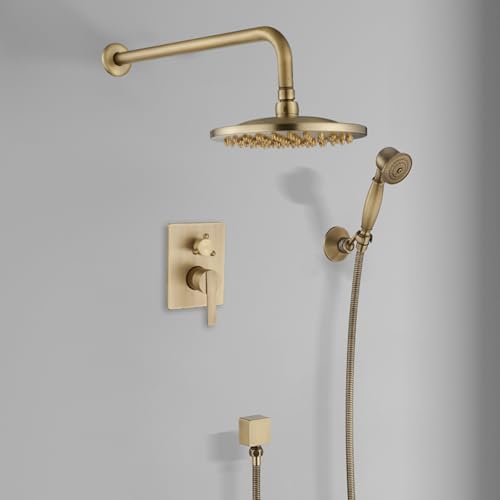 GDMDPTE Ensemble mitigeur de Douche encastré Style Antique - 2 Fonctions, kit de Douche Effet Pluie Rond 20x20cm, Finition Laiton, Accessoire de Salle de Bain Moderne pour Une expérience s