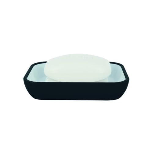 Spirella - Porte-Savon Joshua en Grès, Dimensions 12 x 5 cm, Élégant Accessoire de Salle de Bain, Design Moderne et Pratique pour Un Rangement Optimal, Noir