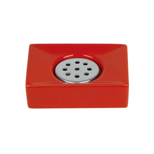 Spirella - Porte Savon Porcelaine Quadro - Élégant Accessoire de Salle de Bain - Design Moderne et Pratique pour Un Rangement Optimal - Rouge - 10,5 x 6,5 cm