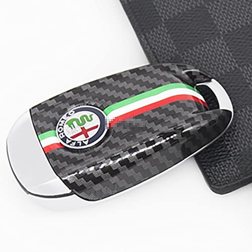 NICKAL Coque de clé en Fiber de Carbone pour Alfa Romeo Giulia Stelvio Coque de clé Porte-clés 3D Accessoires de Couverture de Protection de clé de Voiture,A Style-A