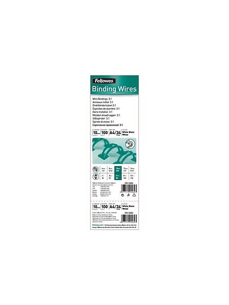 Fellowes Wire Binding Combs 10mm White (Pack of 100) 53262