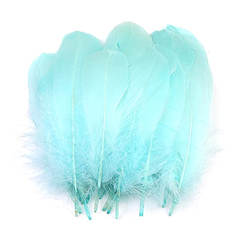 Lot 100 plumes colorées pour travaux manuels,plumes d'oie pour bricolage,masques,chapeaux,boucd'oreilles,accessoires pour cheveux,attrape-rêves,mariage,carnaval,fête,décoration 12 à 18 cm,bleu bébé