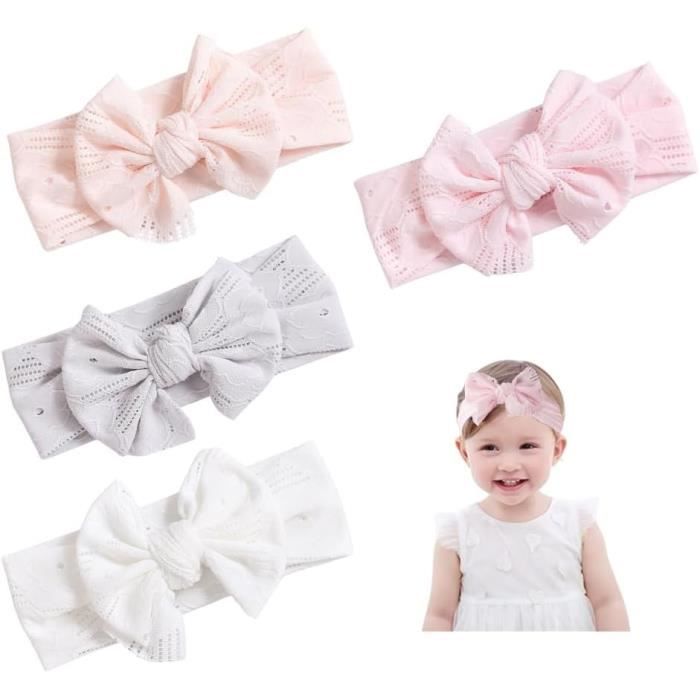 4 Bandeau Bebe Fille Naissance Noeud Bandana Bowknot Nylon Accessoires Turban Cheveux Bandeau Nouveau Né Baby Hair Band Élastique