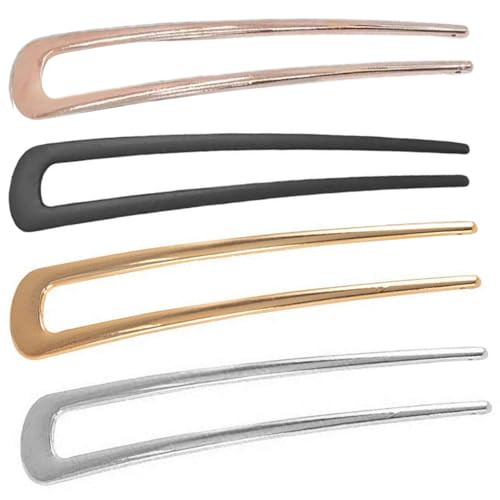 QINZITAO Lot de 4 barrettes à cheveux en alliage en forme de U pour chignon long - Antidérapantes - Légères - Accessoires pour cheveux de fête de mariage