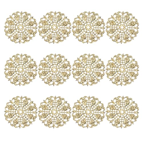 DOITOOL 30pièces Pendentifs Diy Cuivre Creux Rond Floral Breloques Pour Bijoux Femme Accessoires Cheveux Épingle Chignon Et Décoration Créative Cuivre Acidifié