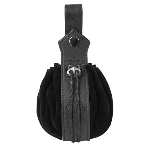 Pochettes médiévales en cuir portables avec cordon de serrage - Pochettes de ceinture médiévales pour renaissances - Sac à dés - Pour homme et femme - Accessoires de costume pour homme et femme, Noir