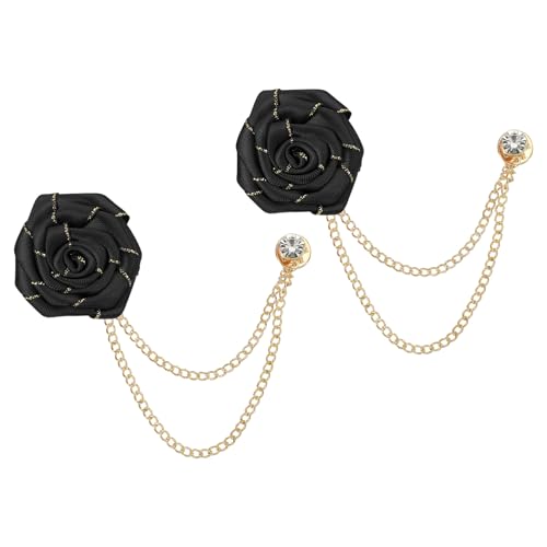 MECCANIXITY Broche pour marié en forme de fleur de rose, épinglette en tissu faite à la main tendance avec chaîne à pompons, clous de costume, accessoires de costume pour homme de mariage, Tissu