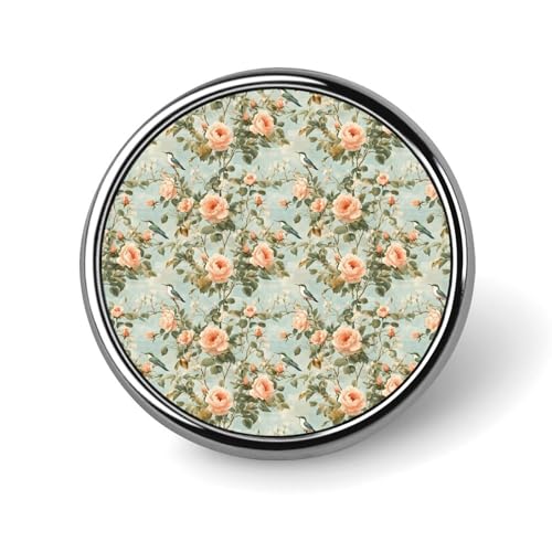 Épingles à boutons pour sacs à dos – Broche ronde tendance avec imprimé de pivoine et colibri pour décoration de vêtements, chapeaux, accessoires de costume pour homme