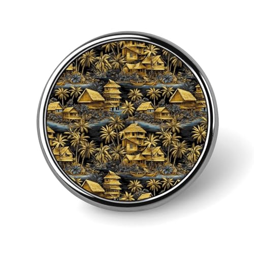 Épingles à boutons pour sacs à dos – Broche ronde tendance hawaïenne rétro avec impression de paysage doré pour décoration de vêtements, chapeaux, accessoires de costume pour homme