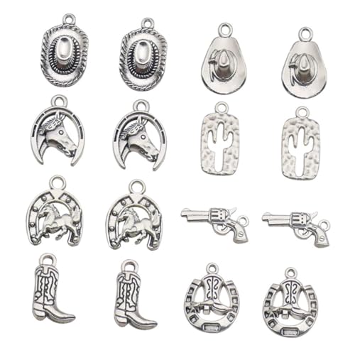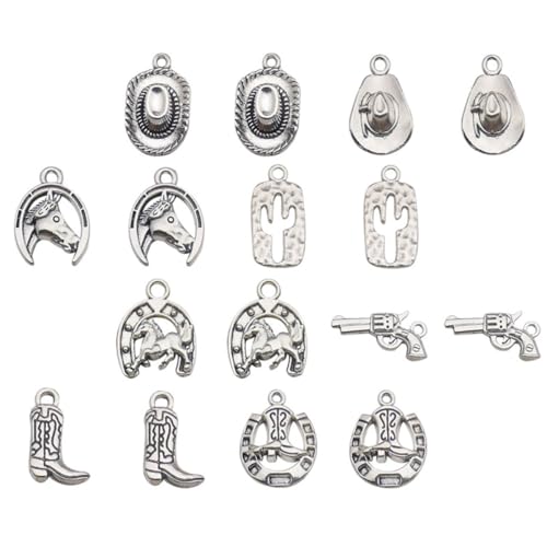 TEHAUX 20 pièces Breloques Western Alliage Robuste pour Bijoux DIY Charms Cheval à Cheval pour Bracelets Colliers Porte-clés Accessoires Style Cowboy Vintage