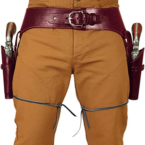 Étui en Cuir Double pour Pistolet – Étui de Ceinture rétro médiéval – Étui rétro pour Pistolet Western Cowboy pour Cosplay, Costume de Cowboy, Accessoires (Rouge)