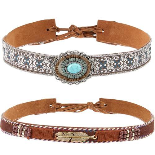 craspire 2 Style Bande de Chapeau de Cowboy Fait à la Main en Daim Coton Cordon Tressé Style Ethnique Occidental Réglable Chapeau Ceinture Accessoires pour Fedora Cowboy Paille Chapeau Occidental