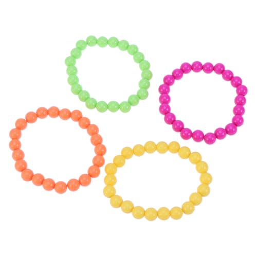 NOLITOY Lot de 4 Bracelets en Perles Fluorescentes en Plastique Néon Multicolores Bracelets Extensibles pour Fête Accessoires Déguisement Disco Années 70-80 Bijoux Légers et Colorés