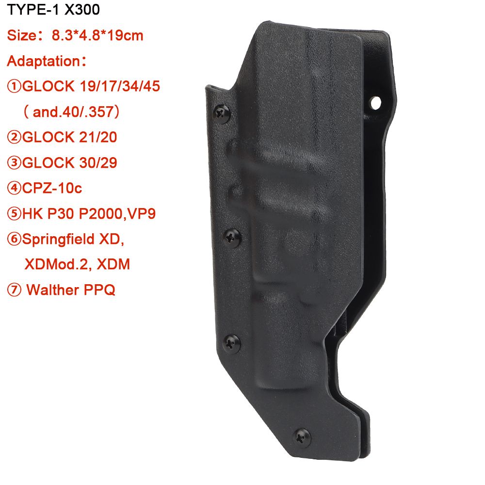 DulQuick-Étui OWB pour odorGlock Ian SW MP,avec lampe de poche TLR1 X400 X300 XC1,accessoires de chasse et de paintball,KYDEX - Type 1 X300 BK
