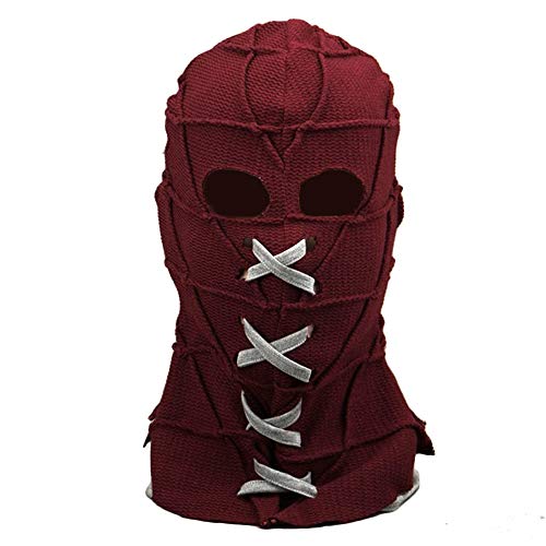 Shancon BrightBurn Masque de cosplay tricoté effrayant rouge respirant avec capuche complète Accessoires Halloween Réglable