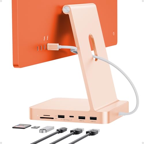Minisopuru Hub USB C pour iMac 24 Pouces 2021/2023, Hub USB iMac avec M.2 NVMe SSD, Accessoires iMac pour iMac M1/M3, Adaptateur USB iMac avec USB A/C 10 Gbit/s, SD/TF, SSD M.2 (Non Inclus), Orange.