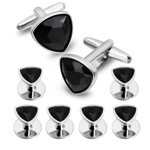 Ensemble de boutons de manchette et de boutons de smoking for homme, cristal de luxe for bijoux ou accessoires d'anniversaire, de mariage ou d'anniversaire Pour Hommes Chemises De Smoking(Black)