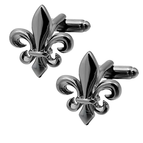 Boutons de Manchette Fleur de Lys | Bouton de Manchette Noir pour Homme | Cadeau Chemise de Mariage pour Homme | Accessoires Hommes Design | Manches Mousquetaire Française Luxe Argenté