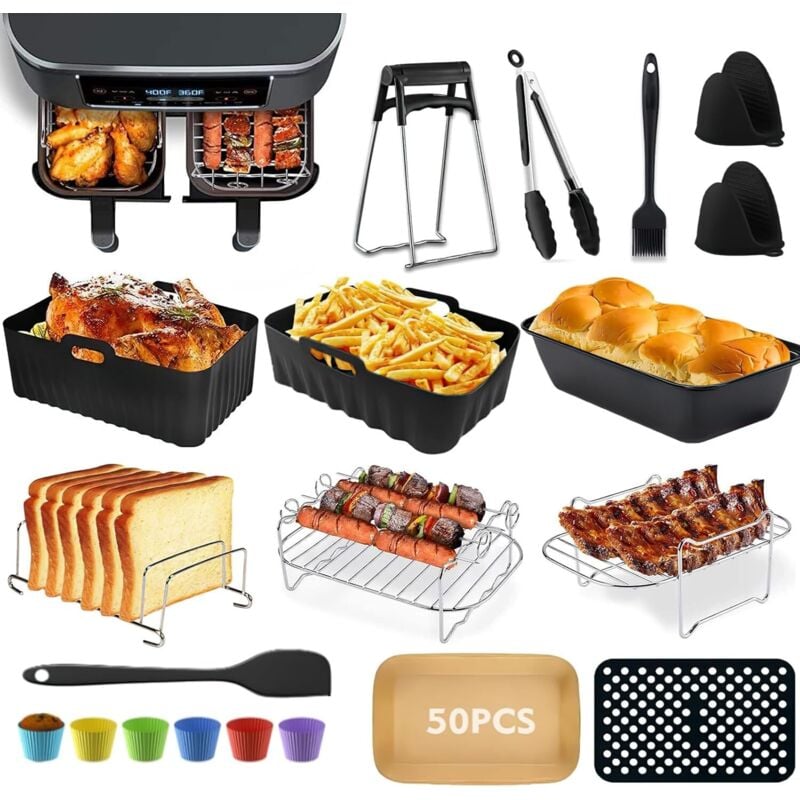 Accessoires pour Air Fryer - Ensemble D'accessoires Pour Friteuse à Air Double Zone Pour Ninja Af300EU, Af400EU, Tower T17088, Friteuse à Air Double