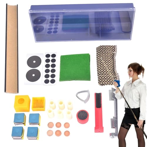 Pool Cue Repair Kit, Kit de Réparation Bâton de Piscine, Kit de Remplacement 28X Pool Cue Tips Pinces de queue de piscine, Pool Stick Trimmer, Accessoires de billard pour Queues de billard