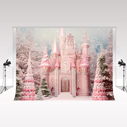 Kate Toile de Fond pour séance Photo de Noël - 3 x 3 m - Château de Bonbons Rose - pour Studio Photo - Princesse Accessoires pour photomaton - Décorations festives pour vitrine de Magasin
