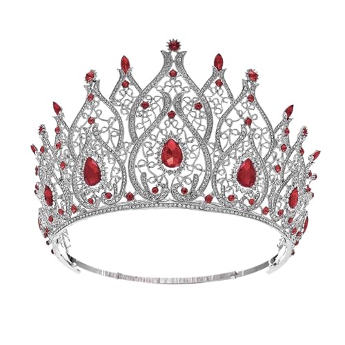 Grande Couronne De Mariage En Strass, Diadème, Coiffe De Reine, Princesse, Accessoires For Cheveux De Concours Délicat Confortable(Red)